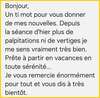 2. Soit vous ressentez des perturbations, de l’inconfort pendant quelques heures ou quelques jours ; vous vous sentez fatigué, d’humeur changeante, vos symptômes vous narguent (« hé, je suis encore là ! ») ; ça va/ça va moins bien, selon les moments de la journée ; ou alors ça allait plutôt mieux pendant quelques jours, puis le problème est revenu. Bref, vous sentez que ça a fait bouger les lignes, mais pas forcément comme vous le souhaitiez.
